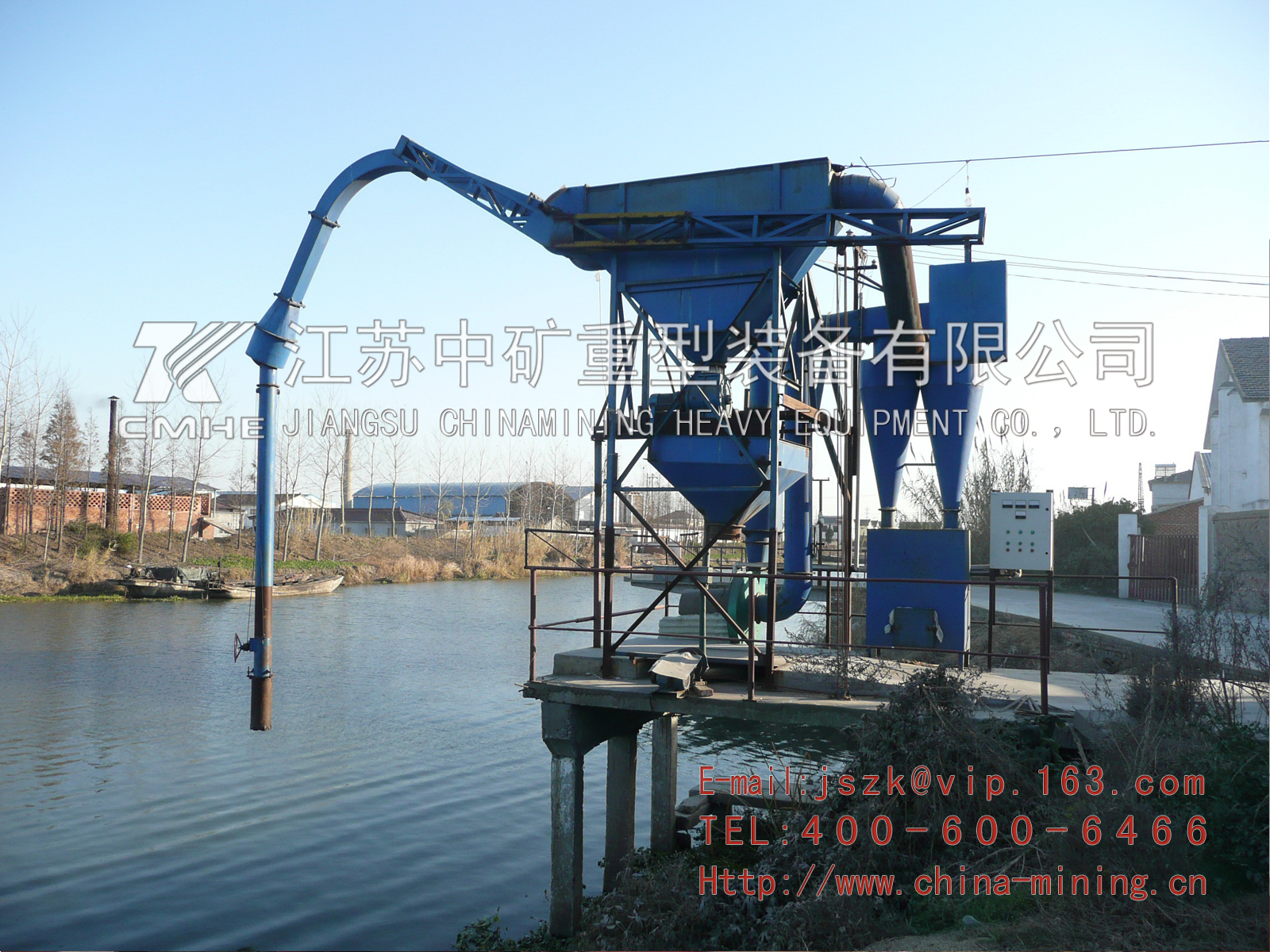由江蘇中礦重型裝備有限公司生產的負壓卸船機采用靈活的液壓折疊多節(jié)吸臂,PLC電器控制及線控操作系統(tǒng)穩(wěn)定可靠,液壓馬達穩(wěn)定耐用,節(jié)能環(huán)保,平均能耗為1~2度電/噸,噪聲低。本公司可根據用戶需要,后續(xù)輸送是設接雙倉泵管道氣力輸送入庫。抽吸臂長度根據碼頭水位和來的船型尺寸定。固定式負壓卸船機是固定在港口、碼頭或散裝物料存放點。采用單倉泵,雙倉泵或分離壓送泵等將物料正壓輸送進入料庫。可分為后續(xù)機械輸送,氣力輸送和直接裝車三種方式。