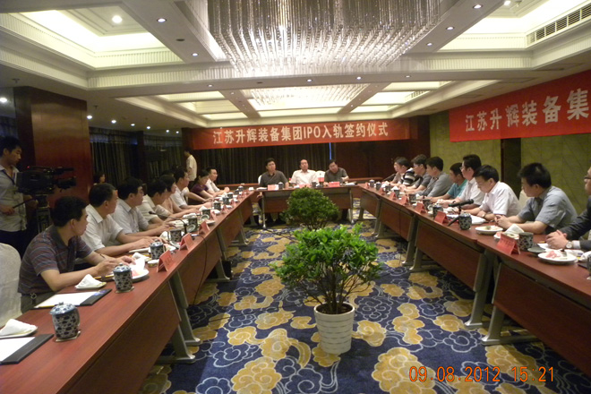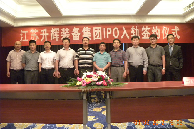 8月9日下午,江蘇升輝裝備集團與三大中介機構在錦龍大酒店簽訂合作協議,進入上市軌道。江蘇升輝裝備集團由南通升輝建材科技有限公司、江蘇中礦重型裝備有限公司、江蘇升輝機電安裝有限公司等幾家核心企業組建。是一家集研發、制造、工程總包為一體的綜合性高科技企業。