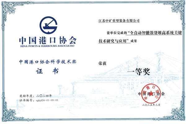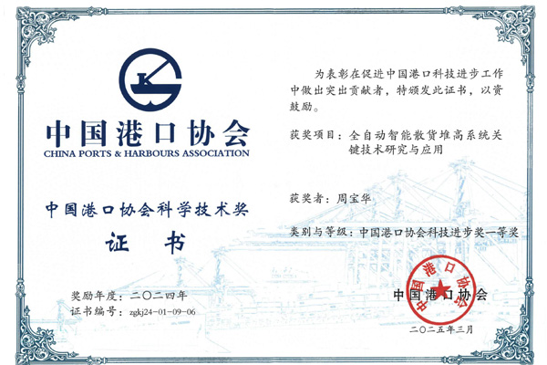 熱烈祝賀我公司“移動式堆料裝船一體機(jī)”榮獲中國港口協(xié)會科技進(jìn)步獎一等獎