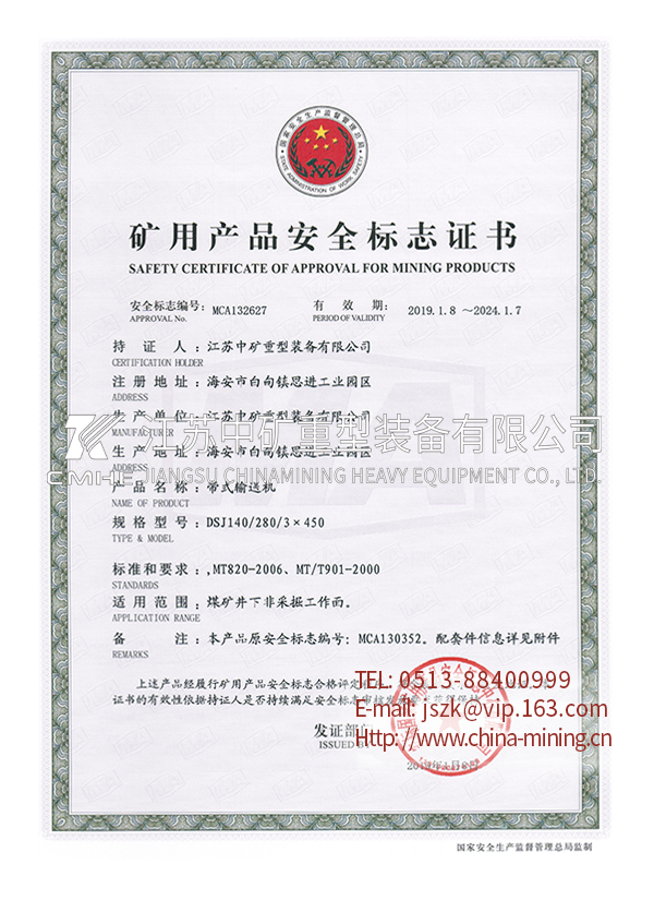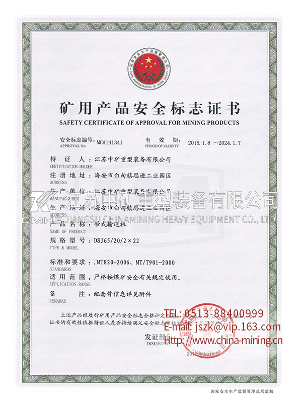 DSJ帶式輸送機(jī)——礦用產(chǎn)品安全標(biāo)志證書