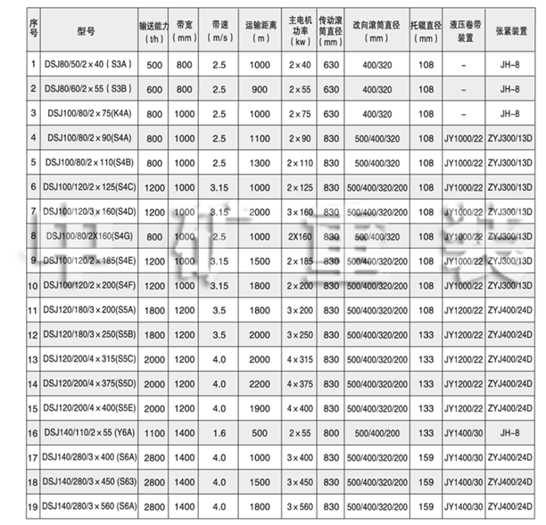 DSJ型可伸縮帶式輸送機(jī)主要用于煤礦井下綜采、高檔普采或一般普采工作面的順槽運(yùn)輸,也可用于巷道掘進(jìn)運(yùn)輸。其同時(shí)也可用于其他礦山、化工、冶金和港口碼頭等運(yùn)距變化的場(chǎng)合進(jìn)行物料運(yùn)送。其主要特點(diǎn)是機(jī)尾可隨著工作面推移而自行移動(dòng),可延伸或收縮其運(yùn)送距離。輸送機(jī)結(jié)構(gòu)緊湊,可不設(shè)基礎(chǔ),可直接在巷道底板上鋪設(shè),也可懸吊在巷道的頂板上,機(jī)架輕巧,機(jī)架間可不用螺栓聯(lián)結(jié),采用“E”形銷或彈性圓柱銷聯(lián)接,拆裝十丹方便。輸送帶采用整芯帶,用機(jī)械接頭聯(lián)結(jié)。若輸送能力和運(yùn)距較大時(shí),可配中間驅(qū)動(dòng)裝置來滿足物料輸送要求。其功能除具有可控的軟起動(dòng)、功率平衡和輸送帶張力自動(dòng)調(diào)控等以外,特別配置了嚴(yán)格的監(jiān)測(cè)、傳感系統(tǒng)和可靠的安全保護(hù)設(shè)施。