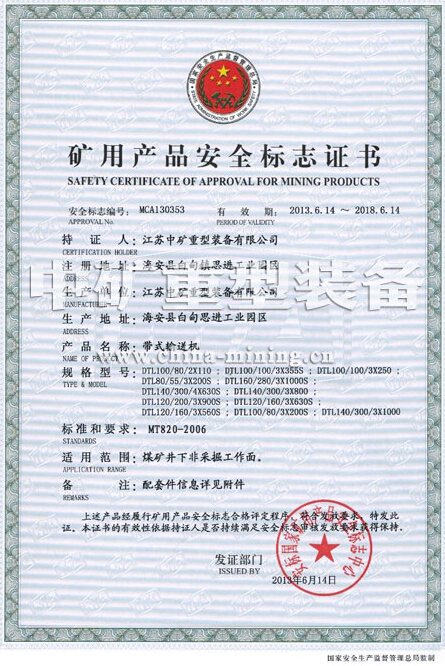 1.1輸送機執行標準: MT820-2006《煤礦用帶式輸送機技術條件》。